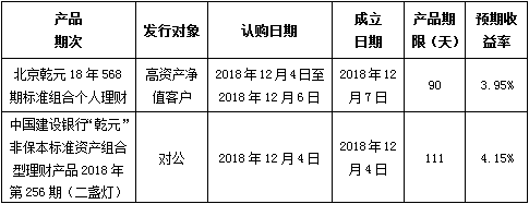 中国建设银行北京市分行定于2018年12月4日发行理财产品,现将相关发行情况公告如下: