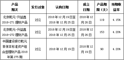 中国建设银行北京市分行定于2018年12月19日发行理财产品,现将相关发行情况公告如下: