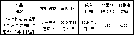 中国建设银行北京市分行定于2018年12月31日发行理财产品,现将相关发行情况公告如下: