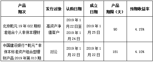 中国建设银行北京市分行定于2019年1月22日发行理财产品,现将相关发行情况公告如下: