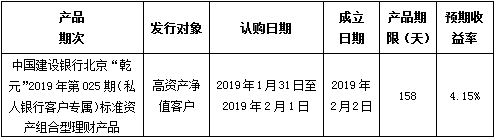 建行北京市分行理财产品发行公告2019年1月31日