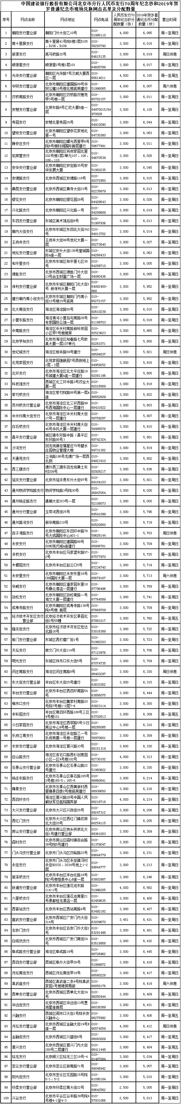 根据人民银行的统一安排,我行承担“人民币发行70周年纪念钞、2019年贺岁普通纪念币”的现场兑换工作,现就有关事项公示如下: