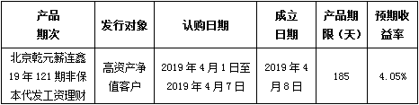 中国建设银行北京市分行定于2019年4月1日发行理财产品,现将相关发行情况公告如下: