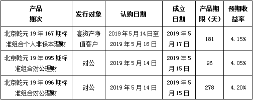 中国建设银行北京市分行定于2019年5月14日发行理财产品,现将相关发行情况公告如下: