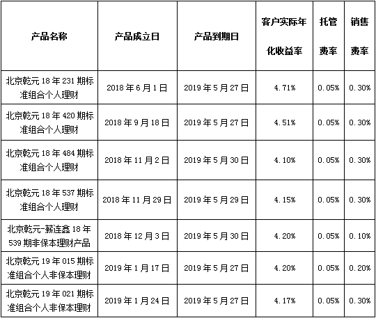 注:上述产品按照说明书中关于资产的投资类型和比例的约定进行投资,所投资非标准化债权资产已进行披露,产品运作收益超出客户实际年化收益率、托管费率及销售费率的部分将作为产品的浮动管理费用。特此公告。