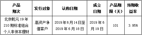 中国建设银行北京市分行定于2019年6月14日发行理财产品,现将相关发行情况公告如下: