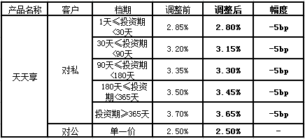 新客户预期年化收益率于2019年8月9日(含)起执行。对于2019年8月9日(不含)前已经购买成功且未赎回的所有存量客户投资本金,按照客户实际持有天数,其中2019年8月9日(不含)前持有部分执行原客户预期年化收益率,2019年8月9日(含)后持有部分自动执行新客户预期年化收益率,但以最终支付的实际年化收益率为准。