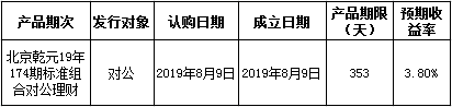 建行北京市分行理财产品发行公告2019年8月9日