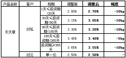 新客户预期年化收益率于2019年9月10日(含)起执行。对于2019年9月10日(不含)前已经购买成功且未赎回的所有存量客户投资本金,按照客户实际持有天数,其中2019年9月10日(不含)前持有部分执行原客户预期年化收益率,2019年9月10日(含)后持有部分自动执行新客户预期年化收益率,但以最终支付的实际年化收益率为准。