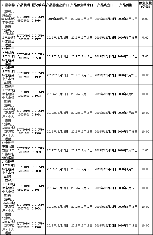 中国建设银行理财产品成立公告2019年12月20日