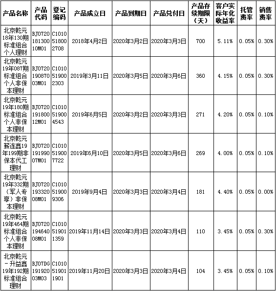中国建设银行理财产品终止及清算公告2020年3月6日