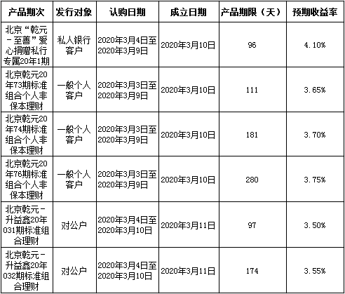 建行北京市分行理财产品发行公告2020年3月6日