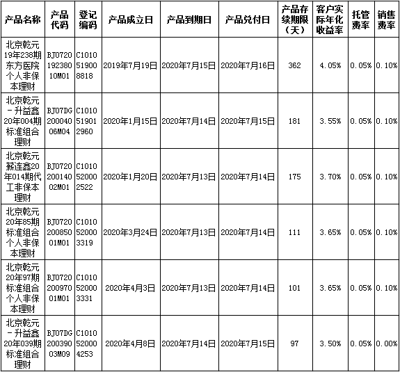 中国建设银行理财产品终止及清算公告2020年7月20日