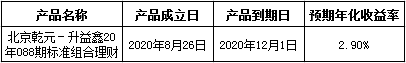 理财产品非标资产披露及资产质量变化公告2020年8月26日