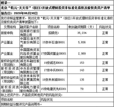九、投资非标准化债权及股权类资产清单(见附录一)