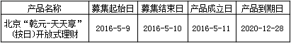 “乾元-天天享”(按日开放型)人民币非保本理财产品于2016年5月11日正式成立。截至报告日,本产品规模为18,231,178,335.52元。