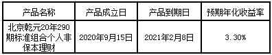 中国建设银行北京乾元20年290期标准组合个人非保本理财产品非标资产披露及资产质量变化公告