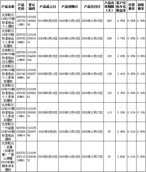 中国建设银行理财产品终止及清算公告2020年12月21日